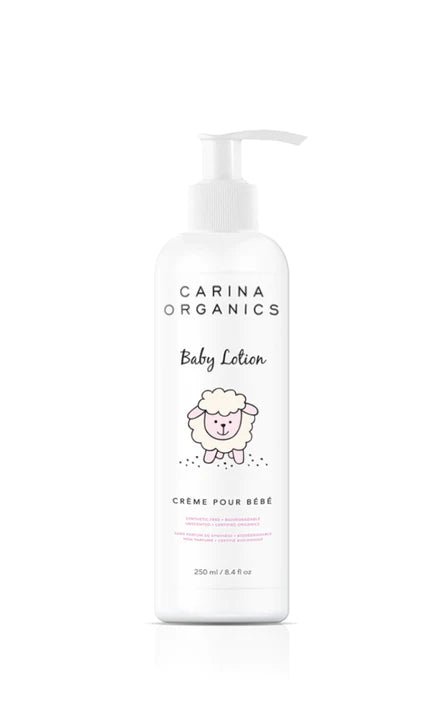 Description: Nothing is softer than a little lamb ... except for a Carina baby! Formulated specifically for a baby’s sensitive skin.  This lotion contains certified organic plant, vegetable and fruit extracts.  It is an unscented nutrient rich formulation designed to restore moisture to the skin, combat bacteria using active organic ingredients, and keep your baby’s skin, soft, smooth, and free of any harmful chemical synthetics.