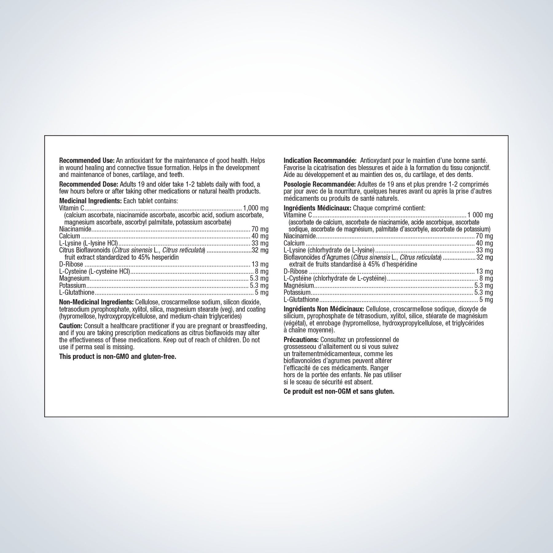An antioxidant for the maintenance of good health. Helps in wound healing and connective tissue formation. Helps in the development and maintenance of bones, cartilage, and teeth.